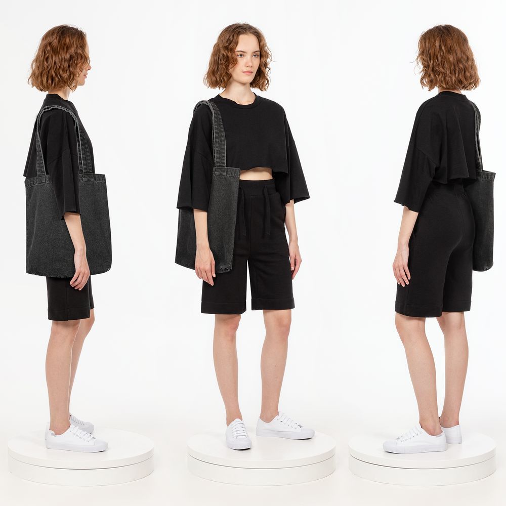 Базовый шопер из джинсовой ткани разработан в рамках единой коллекции и легко собирается в комплекты. Специально спроектированные лекала и технологии пошива открывают простор для любых вариантов кастомизации и нанесения изображений. На видимой части изделий нет лейблов с айдентикой бренда, а название бренда с уходника легко удалить.
