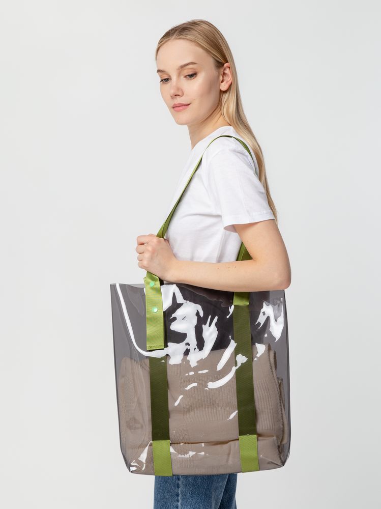 Прозрачные сумки никогда не выйдут из моды. А цветные ручки легко впишутся в брендбук и точно передадут настроение, которое хотелось бы транслировать.