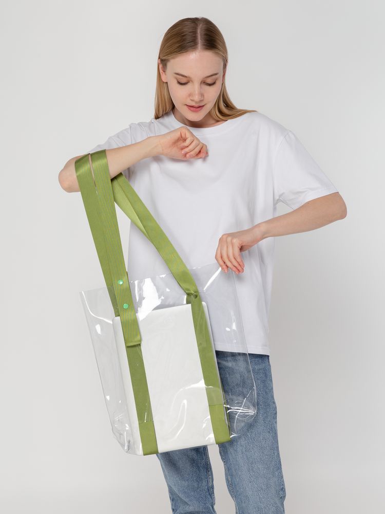 Прозрачные сумки никогда не выйдут из моды. А цветные ручки легко впишутся в брендбук и точно передадут настроение, которое хотелось бы транслировать.