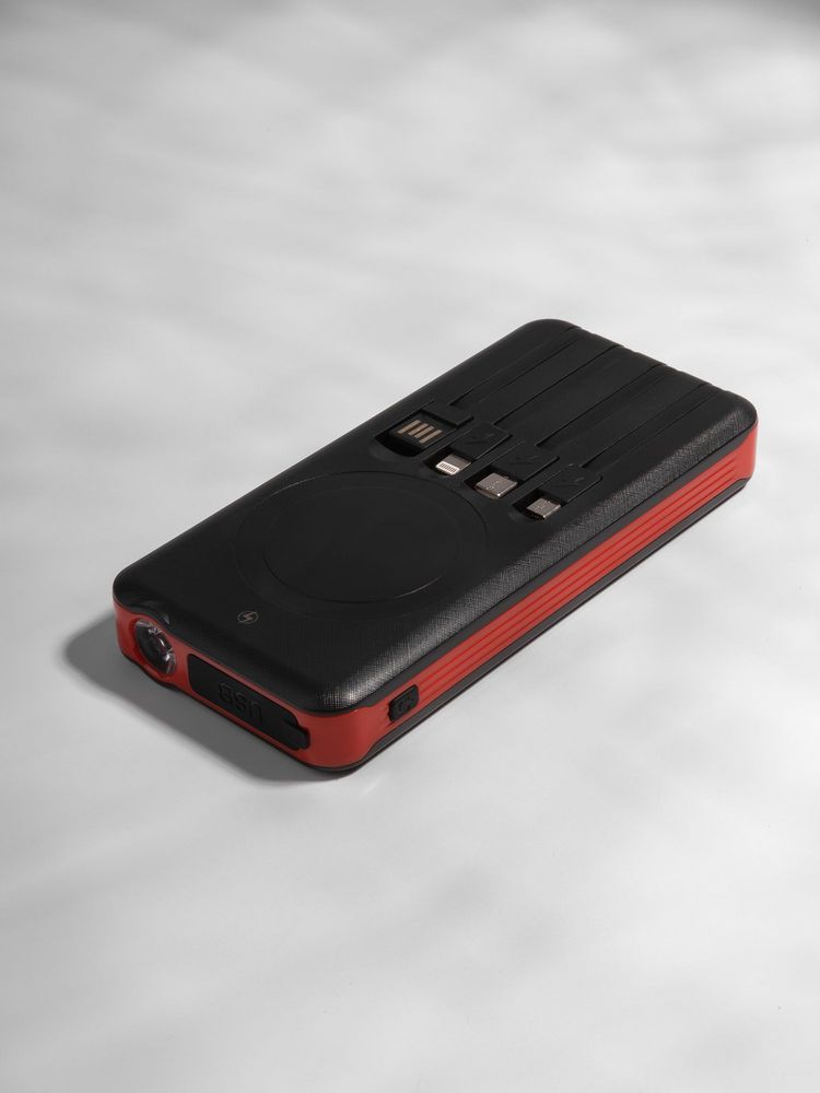Holiday Maker Wireless — outdoor-аккумулятор с ударопрочным корпусом и защитой от пыли и брызг, который не страшно взять с собой в поход. С ним удобно заряжать разные типы устройств благодаря области для беспроводной зарядки, а также 3 встроенным кабелям с разъемами micro USB, Type-C и Lightning. Со встроенной солнечной батареей получится не остаться совсем без связи. Яркий фонарик осветит путь или послужит сигнальным маячком.