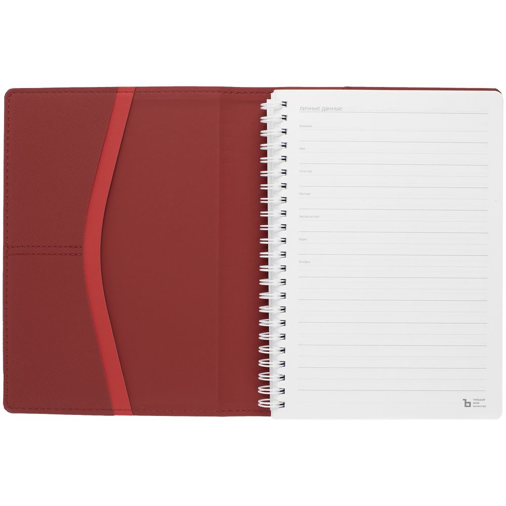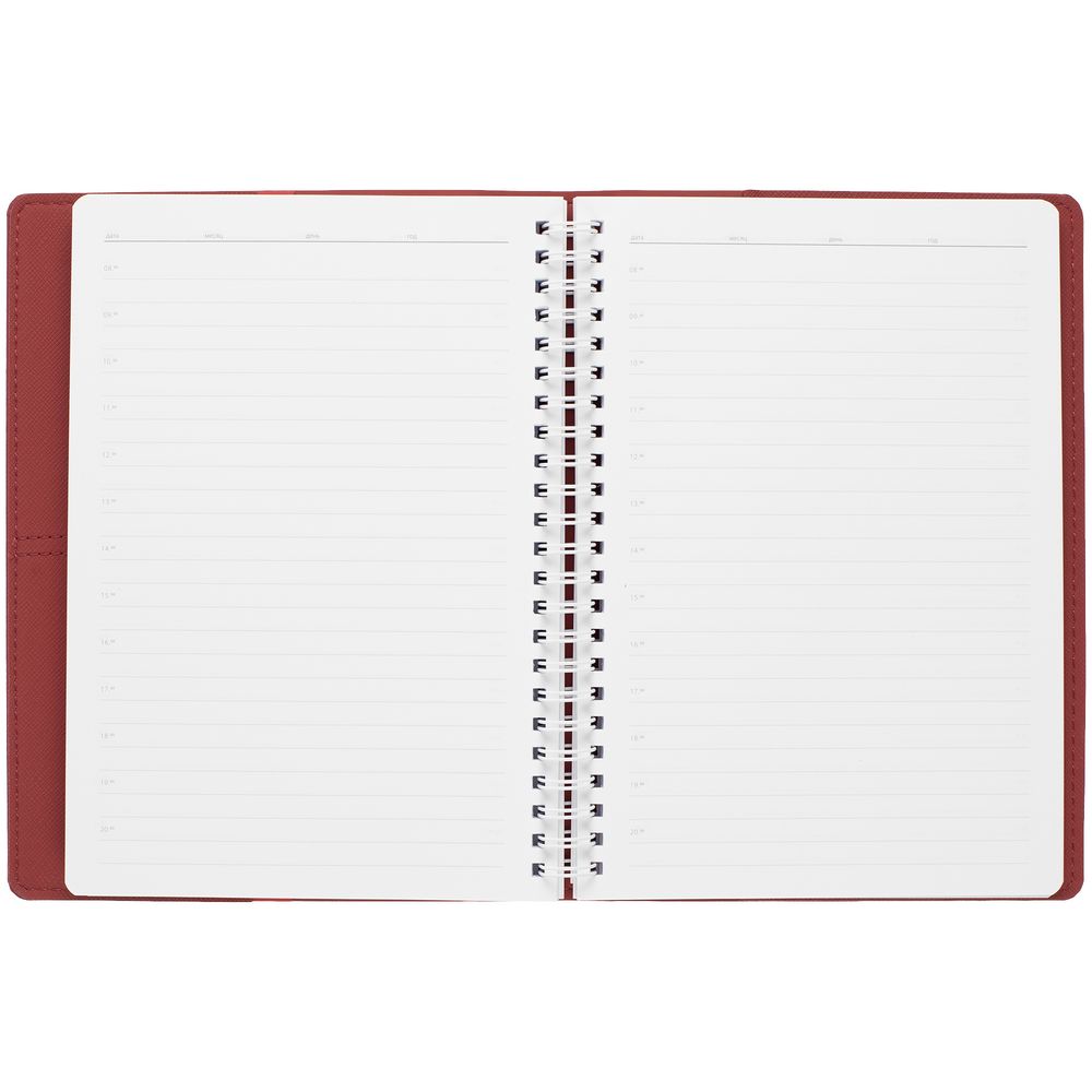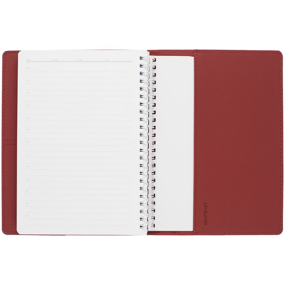 Ежедневник с блоком на пружине в твердой обложке, выполнен из материалов Nice Touch, Soft Touch и Soft Touch Ultra красный.