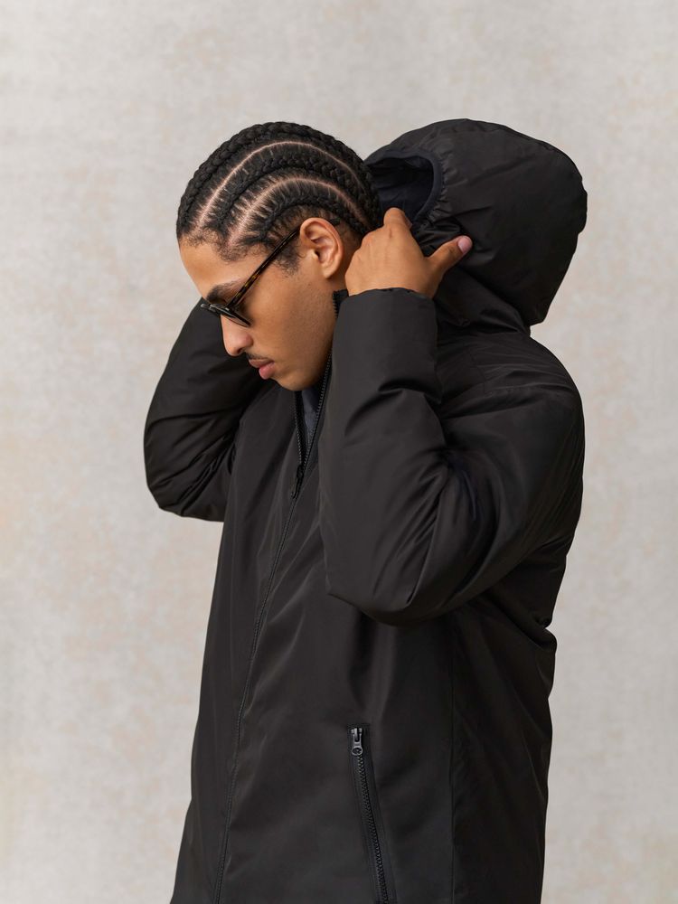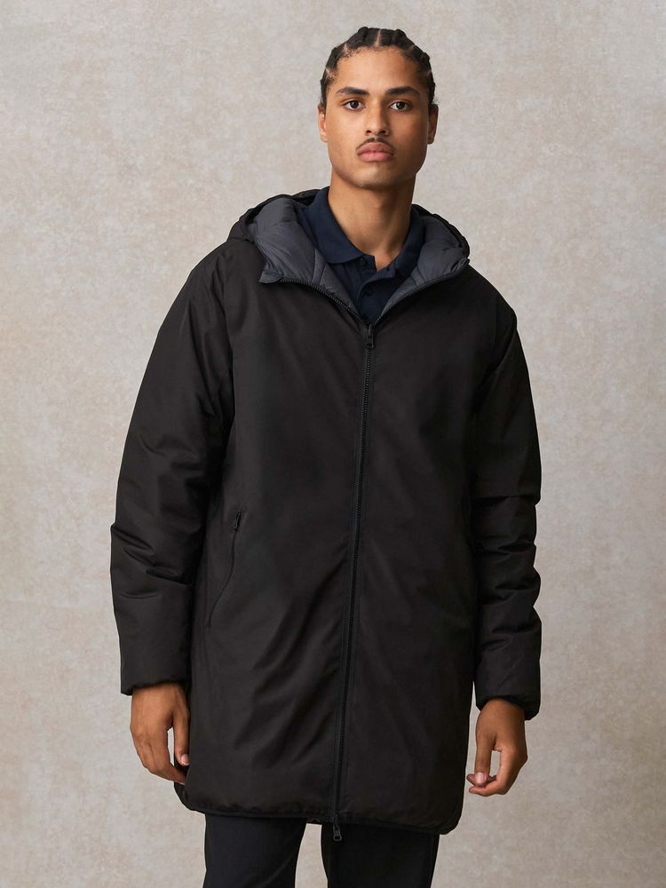 Двусторонняя утепленная парка с капюшоном. Одна сторона гладкая с водоотталкивающим покрытием, другая — стеганая. Стильная, удобная и функциональная, эта парка станет идеальным решением как для подарка, так и для повседневного использования.