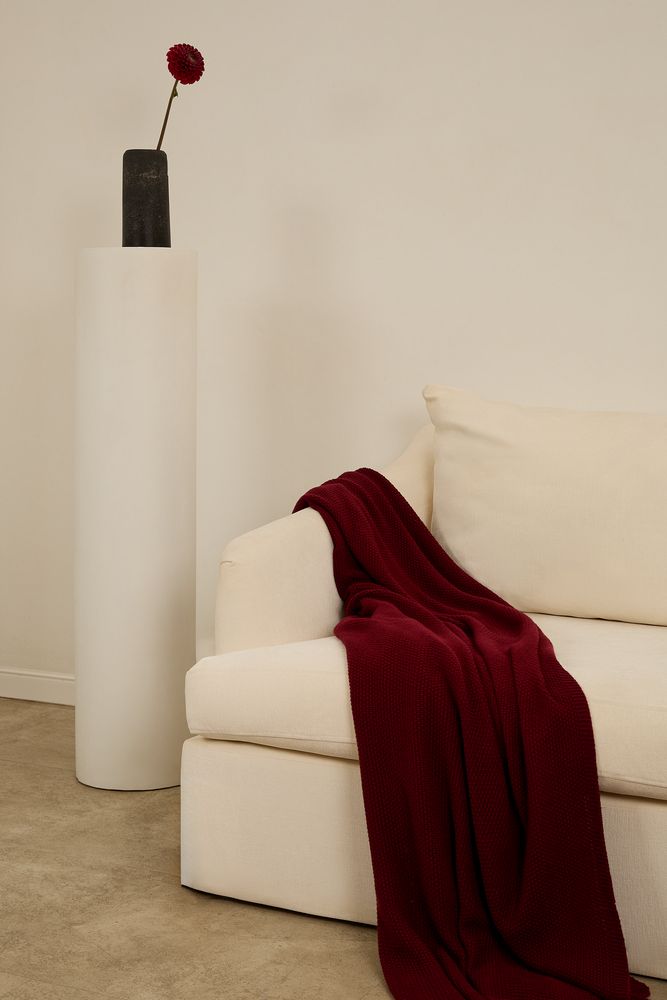 Объемный акриловый плед окутает своим теплом, а благодаря насыщенным цветам и мелкой ажурной вязке добавит изысканного шика в современный интерьер спальни или гостиной.
