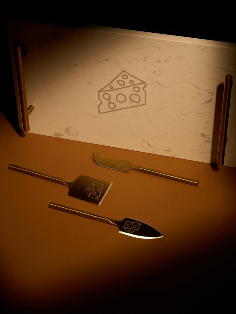 Сырный набор Chambery — выбор искушенных гурманов. В этом сете роскошно и продуманно все: изысканная кварцевая доска со специальными «ножками» для устойчивости и удобными ручками, а также стильные функциональные ножи для нарезки сыров разных сортов и твердости. Ведь на идеальной сырной тарелке обязательно должно быть несколько сортов!