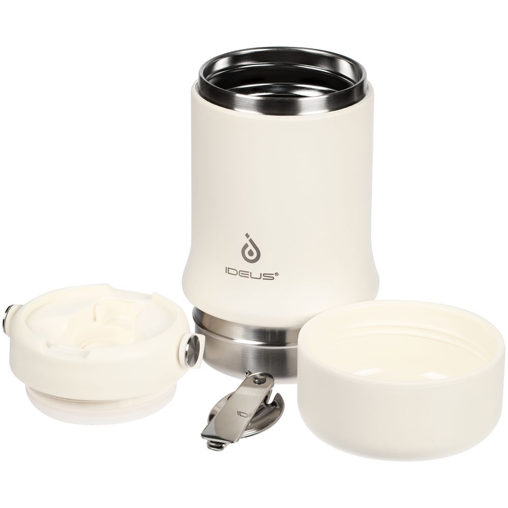 корпус — нержавеющая сталь, 18/8; крышка — пластик, пищевой силикон; ручка — полиуретан, термопластичный; ложка — нержавеющая сталь