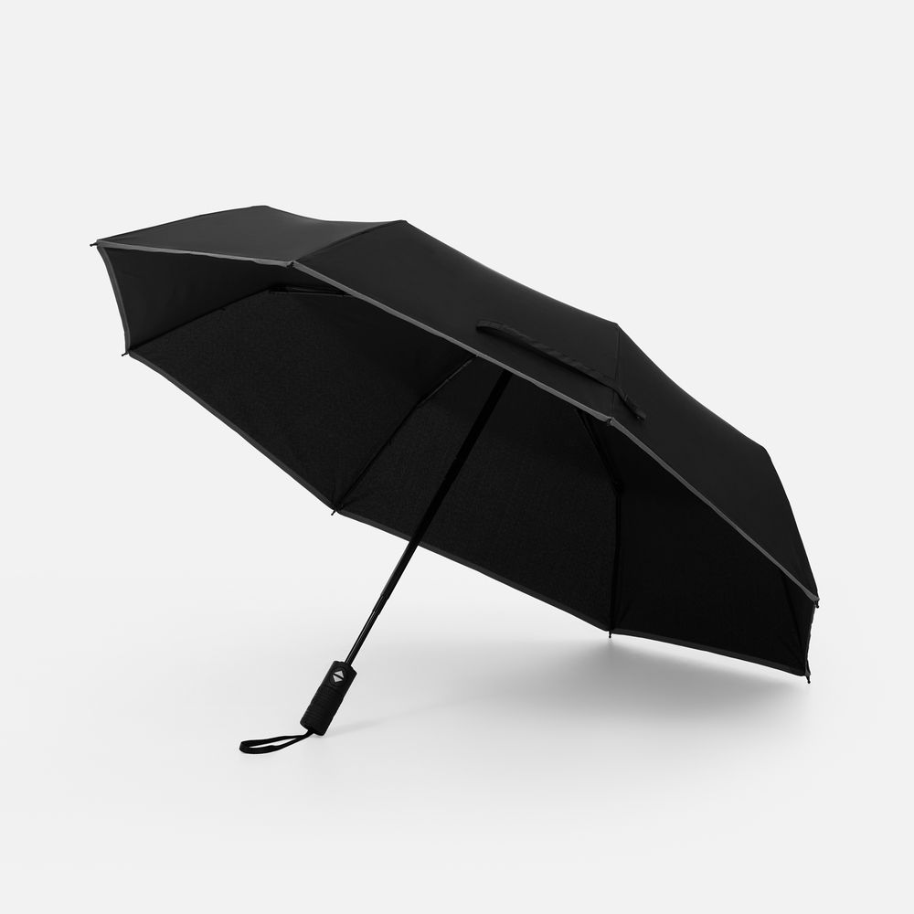 Стильный прочный зонт Tyre не боится ржавчины и нагрузок благодаря каркасу из стекловолокна. Светоотражающий кант делает этот зонт незаменимым спутником в темное время суток, а тактильный рисунок протектора шины на ручке превращает его в продуманный подарок для автолюбителей и партнеров автомобильной сферы.